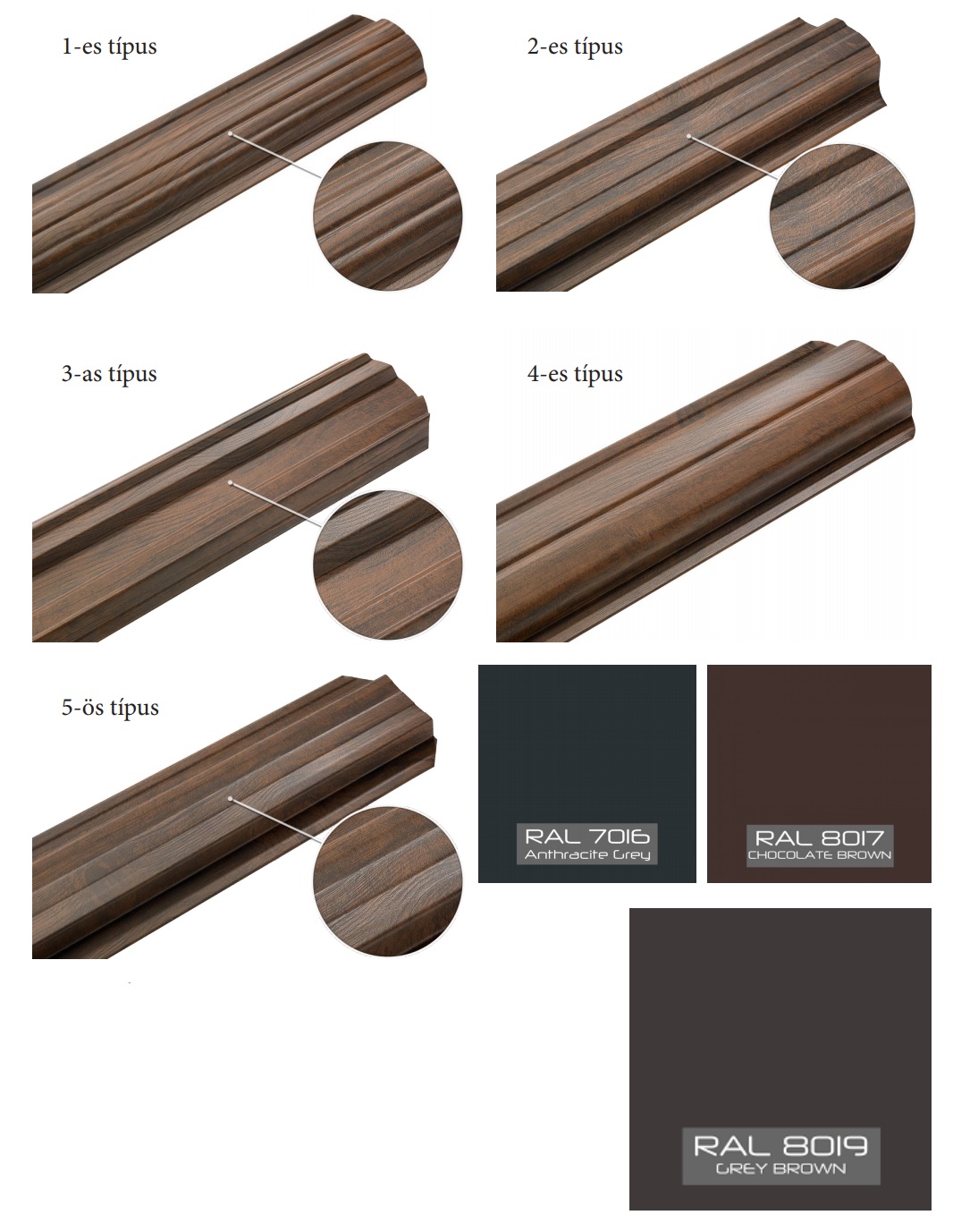 Ezen típusú elemek kérhetőek faminta nélkül, mindkét oldalt egyszínű változatban fényes és matt